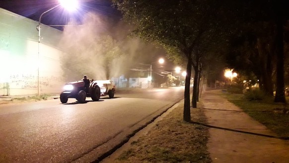 La tarea se hizo con la colaboración de productores de esta ciudad que diluyeron lavandina con agua en las pulverizadoras para luego recorrer diferentes sectores de la ciudad, en especial la zona céntrica, y las avenidas que permiten llegar desde los barrios al centro de Regina.
