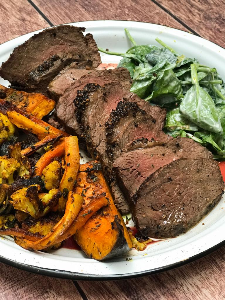 8. Colocar las verduras en una placa con aceite de oliva, condimentar con las especias picadas en el mortero y cocinar en el horno hasta que dore.