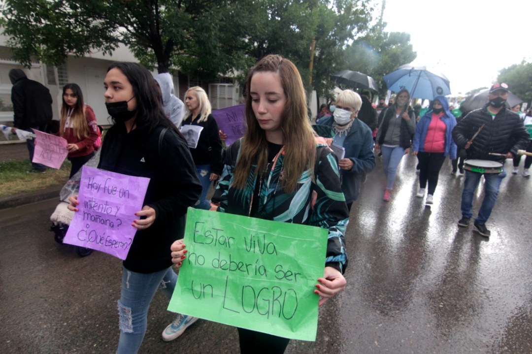 Vecinos, vecinas, organizaciones sociales y sindicales de Centenario realizaron una manifestación esta tarde para exigir justicia por el intento de femicidio de una mujer de 40 años, en el barrio Sarmiento. Pese a la lluvia que imperaba en ese momento, una nutrida cantidad de manifestantes acompañaron el relamo.
