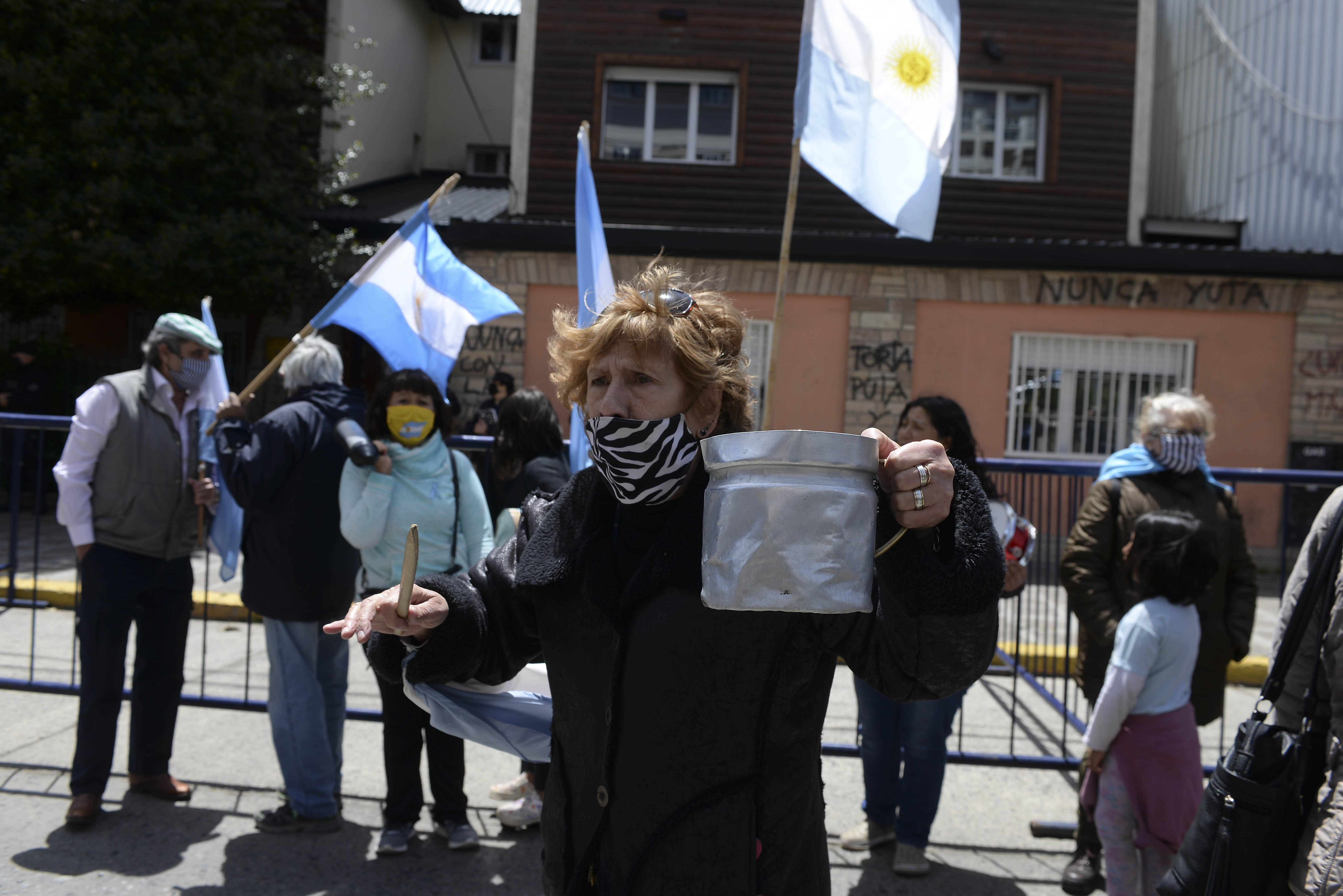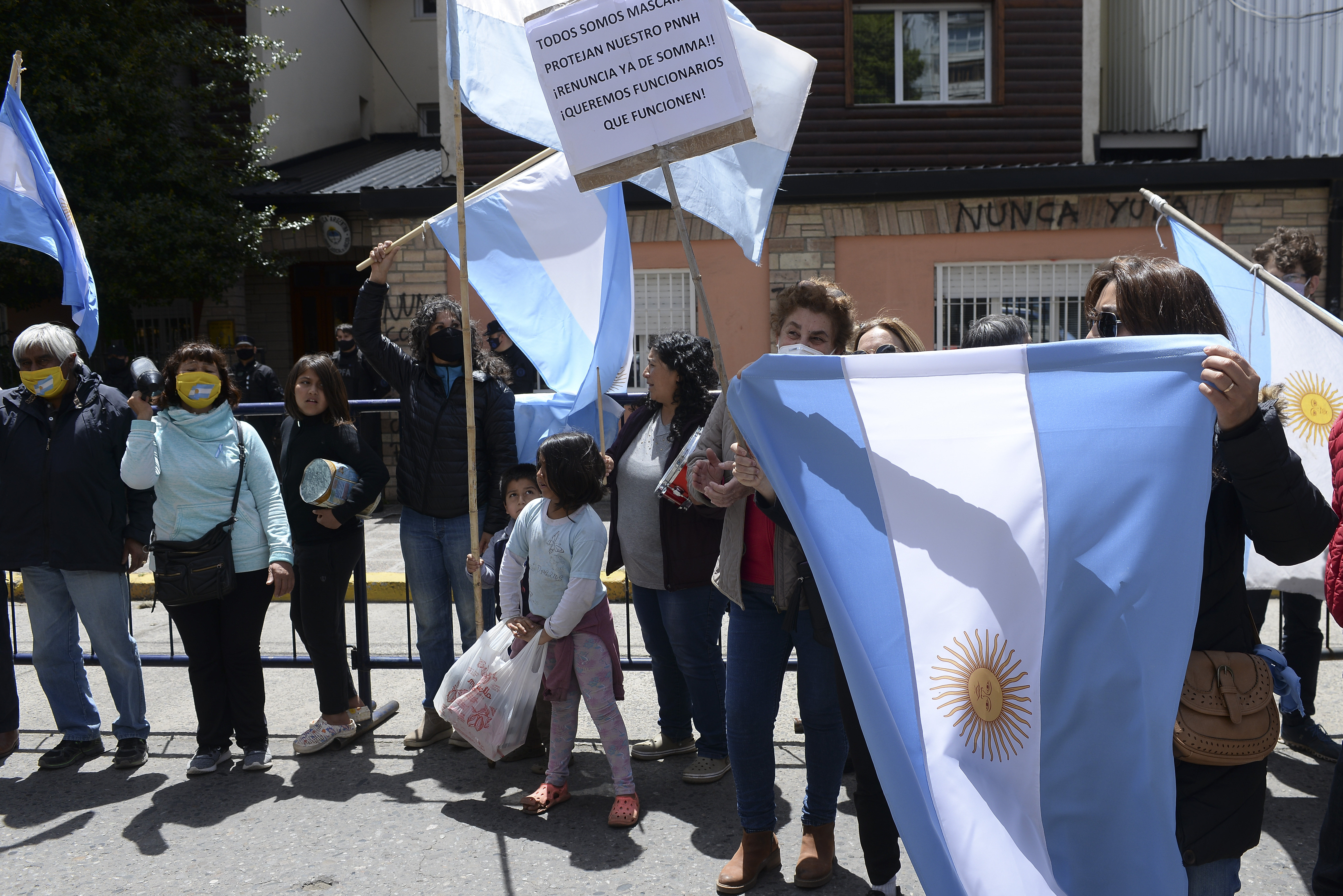 Los manifestantes reclamaron a viva voz “justicia” y “desalojo”, portaban banderas argentinas y antes de desconcentrarse cantaron el himno. En un principio, dispusieron un corte parcial de tránsito y los autos circulaban por una sola mano a paso lento. Algunos tocaban bocina en señal de adhesión. Pero minutos después la propia policía valló la calle y empezó a desviar los vehículos unos 100 metros al este y al oeste del juzgado.