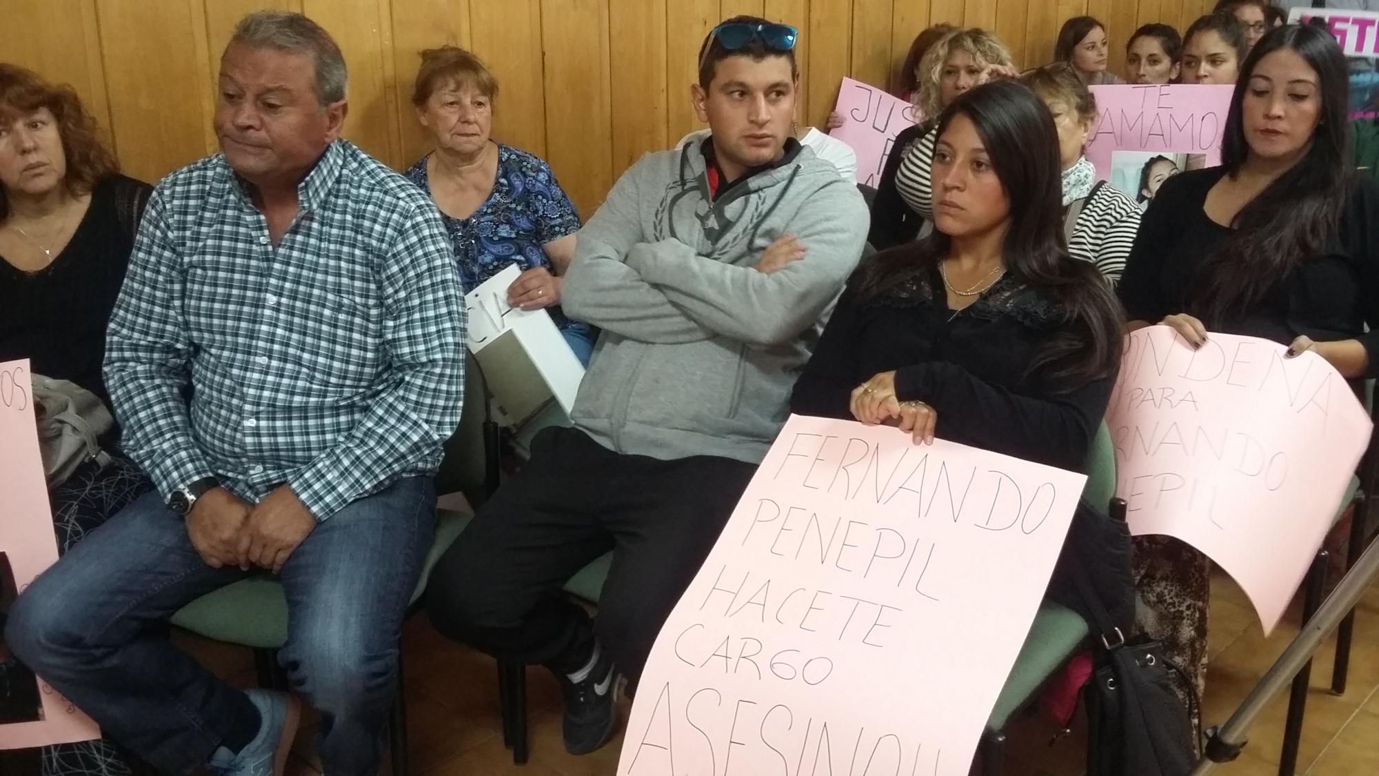 El padre de la víctima, Alberto Arabarco, escuchó en silencio la versión del joven y levantó un cartel con el rostro de su hija que rezaba “Fernando Penepil hacete cargo asesino”.
