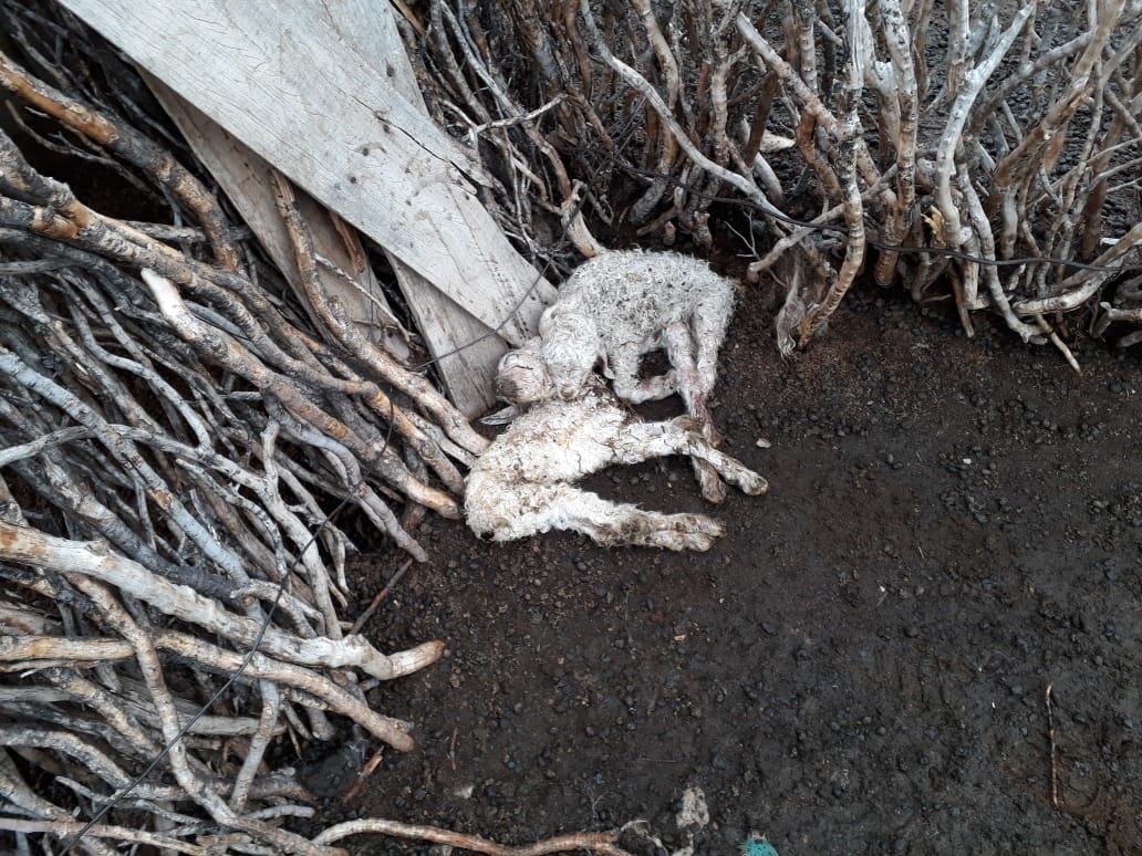 “Esto es parte del impacto ambiental que nadie mide. Hay más de 20 crías perdidas desde que empezó la parición y se esperaba una producción de unos 700 chivitos de unas 500 hembras, eso quedará bajo exclusiva responsabilidad de la firma AES y de la provincia, que otorgó terrenos a empresa sin observar que el lugar estaba mensurado, tenía papeles y ocupantes”, señaló el abogado de la familia Cárdenas, Emmanuel Guagliardo.