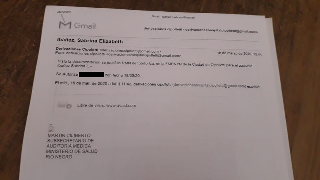 «Ella esta asistida desde el primer momento que dice haberse lesionado. Si los turnos médicos son más lentos es debido a la pandemia, nada podemos hacer»,