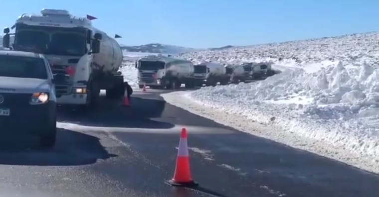 «Hoy se trabajó con vialidad provincial, Hidenesa, gendarmería, Defensa Civil de aluminé y la subsecretaría provincial de Defensa Civil. Se pudo hacer un convoy de camiones y se llevó el gas hacia Las Coloradas, Aluminé, Villa Pehuenia y Moquehue«, confió el subsecretario de Defensa Civil y Protección Ciudadana, Martín Giusti.