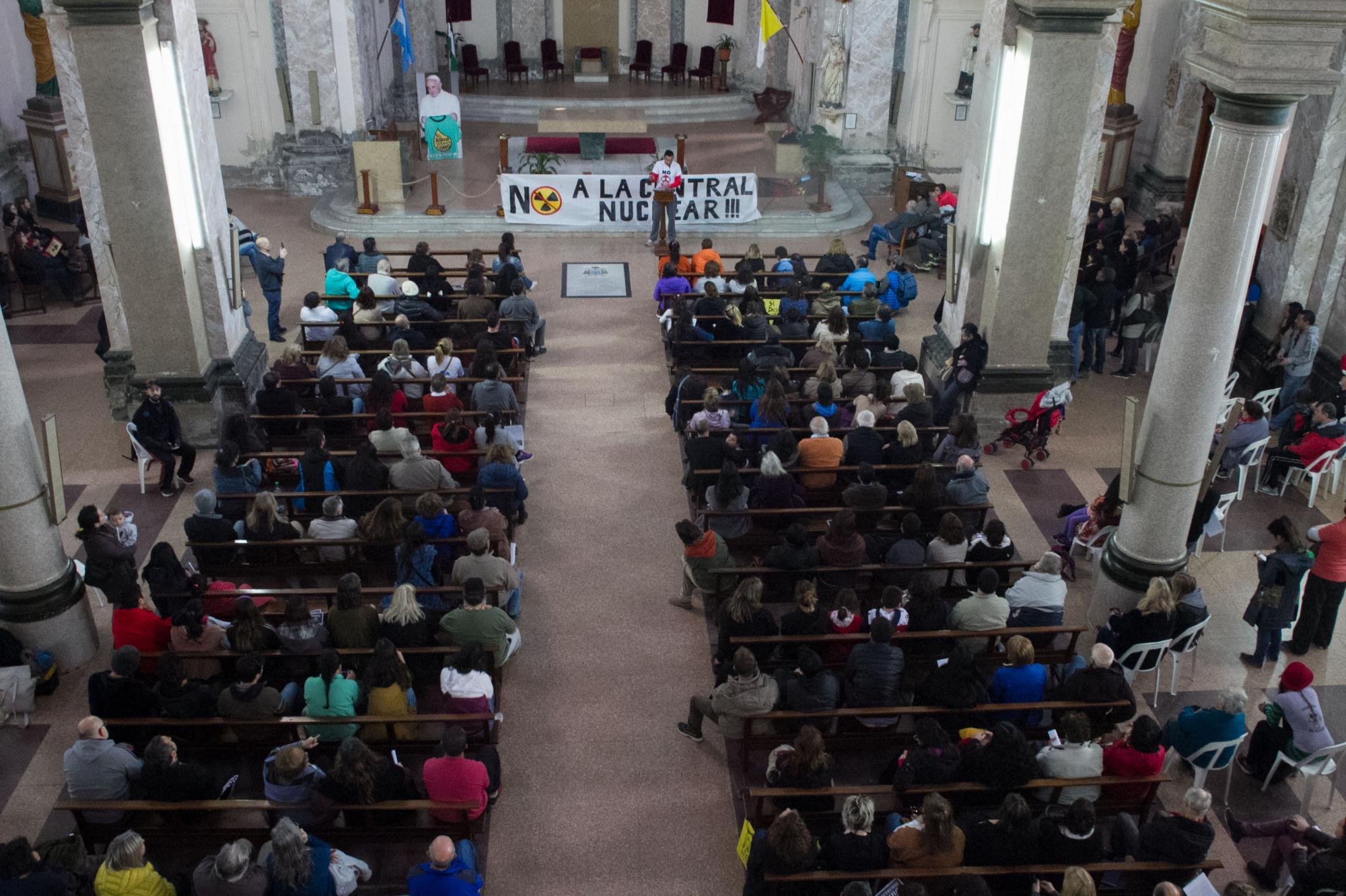 Por la tarde, el “no a la instalación de una planta nuclear” dio lugar a una multitudinaria asamblea extraordinaria que desbordó el amplio espacio de la Catedral de Viedma.