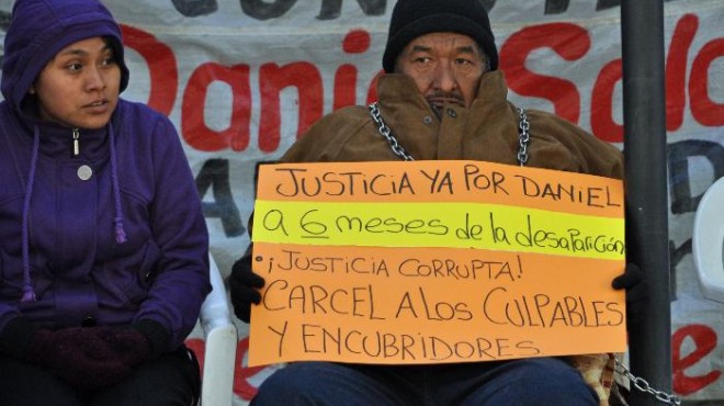 Gualberto Solano se encadenó en mayo de ese año, a un poste ubicado en la vereda del edificio donde funcionan la fiscalía y el juzgado penal de Choele Choel, cuando se cumplían seis meses de la desaparición.