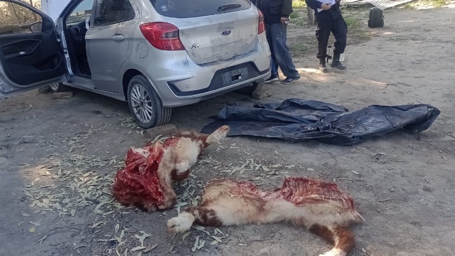 Fue en el interior de una chacra donde encontraron abandonado al vehículo y además, se pudo observar que el animal faenado. A pesar de rastrillajes entre la Brigada Rural y personal de la Unidad 41, no se pudo dar con las personas que huyeron del control policial.