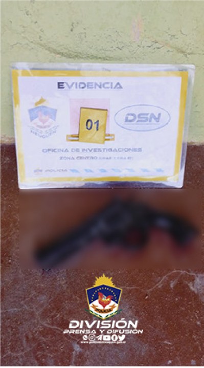 En el interior de la vivienda se encontraron dos armas de fuego: una pistola Versa calibre 9mm y un revolver Smith and Wesson calibre 32 largos, y en el hall de la casa se encontró una réplica de un revolver de plástico color negro.