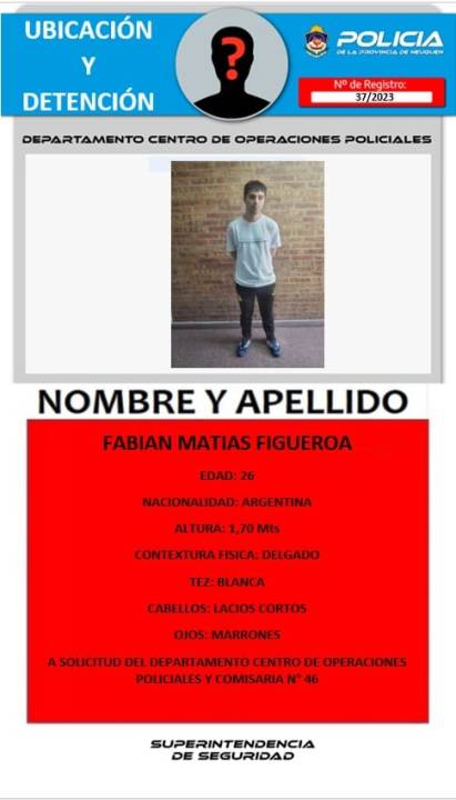 Desde anoche comenzó el operativo para dar con el paradero del joven de 26 años, oriundo de Neuquén, que se habría fugado cerca de las 22. El comisario inspector José Mendéz confirmó la búsqueda a este medio y brindó detalles sobre la misma.