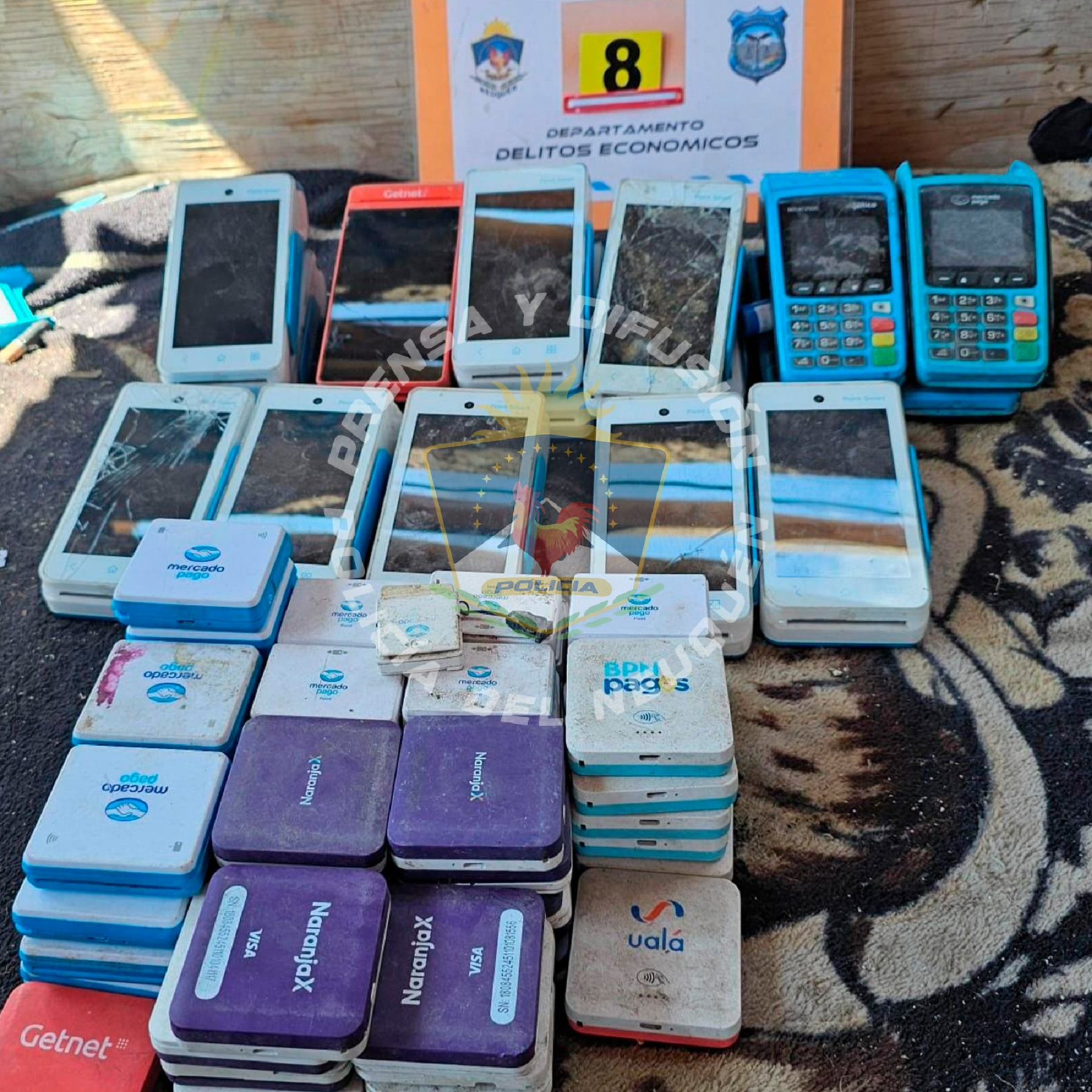 Durante los allanamientos, los agentes secuestraron 87 terminales de POSNET y MPOS, 852 tarjetas bancarias, 63 restos de tarjetas, 9 teléfonos celulares, 100 SIM cards, 8 DNI de víctimas, 2 routers Wi-Fi, 2 equipos UHF, un disco externo, una notebook y una CPU. Todo este material fue considerado clave para la causa.