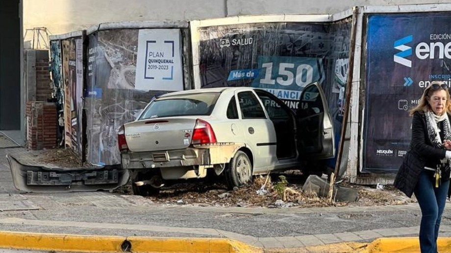 Por circunstancias que todavía son investigadas, un fuerte incidente de tránsito se produjo en una zona transitada del centro de Neuquén capital, por la tarde de este martes. El resultado fue que un auto terminó contra la cartelería publicitaria en la vía pública.