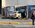 El hecho despertó la curiosidad de varios transeúntes que pasaban por la zona y vieron al auto incrustado en uno de los carteles dispuestos en esa esquina.