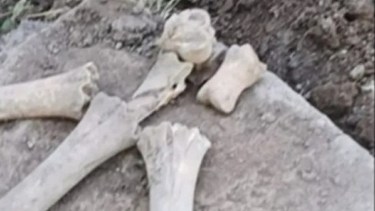 Las personas colocaron las piezas óseas sobre una piedra y lograron reconstruir parcialmente una figura humana.
