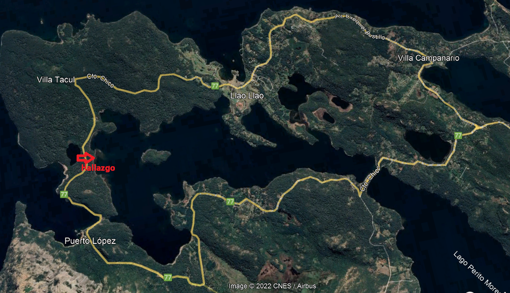 El cuerpo habría sido detectado a unos metros del sendero de acceso al lago Escondido, ubicado en jurisdicción del parque municipal Llao Llao, a unos 5 kilómetros del puerto Pañuelo.