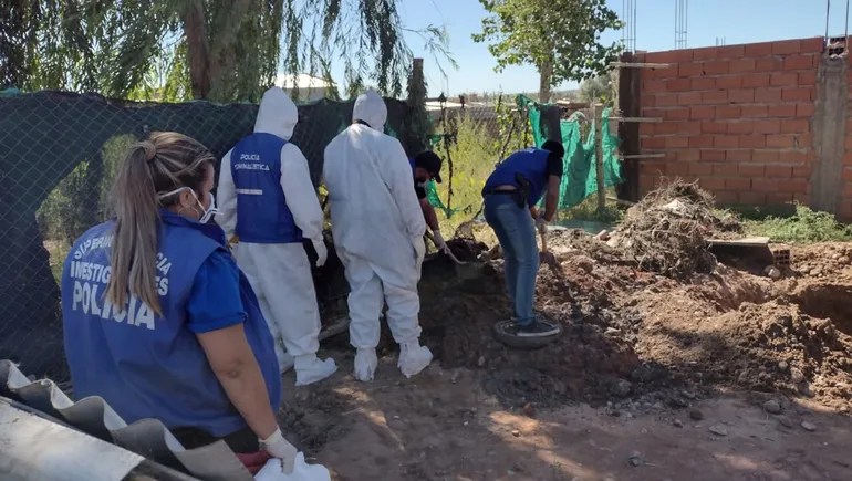 «A la tercera palada apareció el cuerpo», describió. También encontraron un colchón, ropa y otros elementos. Todo estaba cubierto de cal, en un intento de borrar huellas.