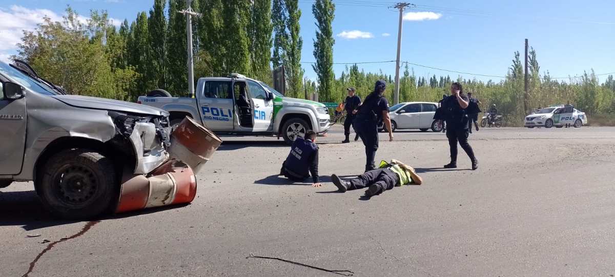 El operativo comenzó en Roca y fue protagonizado por una camioneta Hilux a toda velocidad sobre la Ruta 22. Aseguraron que finalizó en uno de los ingresos a la isla Jordán cuando el vehículo impactó contra un móvil policial. Policías resultaron heridos tras el choque.