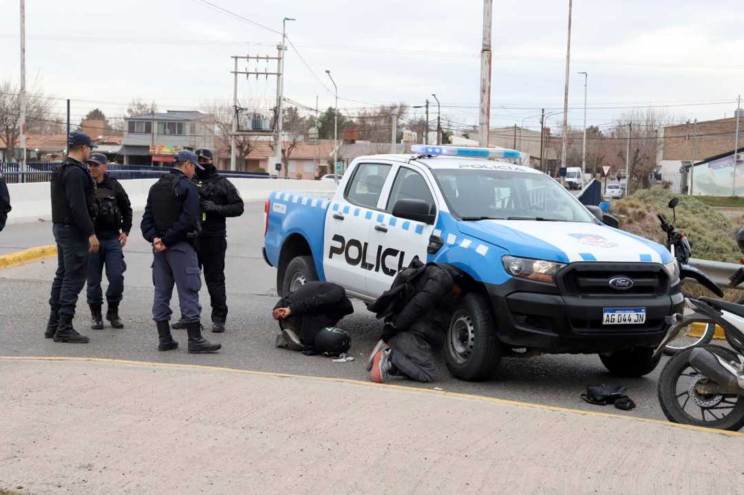 Un intenso operativo que involucró una persecución, sorprendió a los vecinos del sector norte de Neuquén capital. Los protagonistas fueron dos sujetos a bordo de una motocicleta, los que tras ser perseguidos por varios kilómetros, fueron demorados en el segundo puente del barrio 14 de Octubre, a pocos metros de la Ruta 7