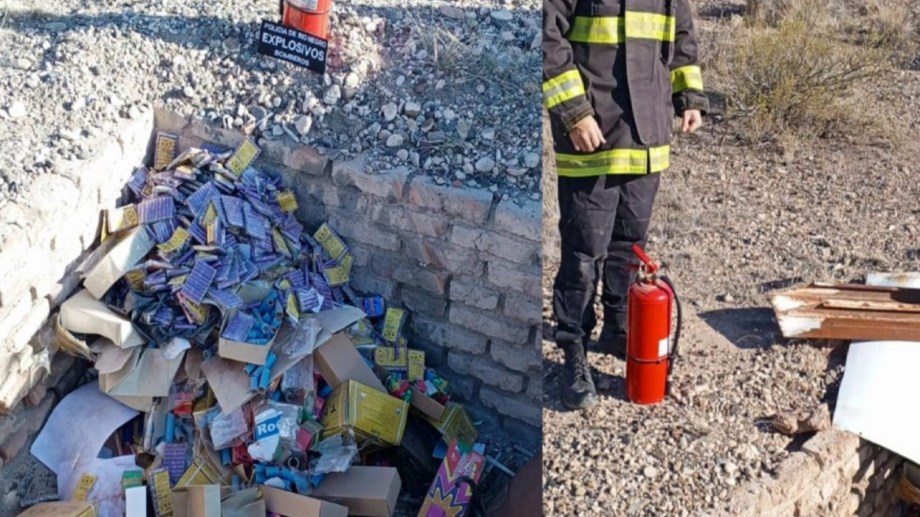 La Brigada de Explosivos de General Roca incautó pirotecnia no autorizada para la venta. El operativo incluyó la destrucción del material mediante un proceso de neutralización en seco y una quema controlada para eliminar cualquier riesgo potencial.