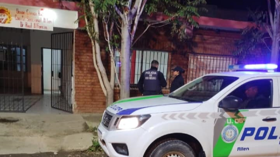 El edificio utilizado como comité de la Unión Cívica Radical (UCR) en Allen, fue protagonista de un hecho delictivo ayer jueves. Personal policial trabaja en el lugar para dar con los autores del hecho.