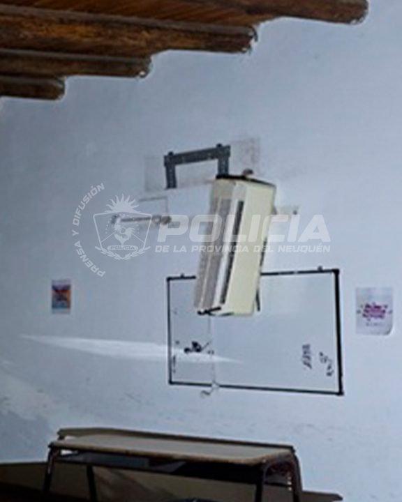 Se encontraron dos equipos de aire acondicionado descolgados, un placard de chapa que había sido forzado violentamente y una ventana en el sector de los baños con los cristales rotos, lo que indicaba la clara intención de preparar un botín para su posterior retiro del lugar.