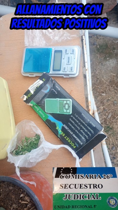 En esa misma vivienda también se hallaron dos plantas de cannabis sativa. En el segundo domicilio allanado, los policías encontraron otra planta similar y una balanza de precisión.