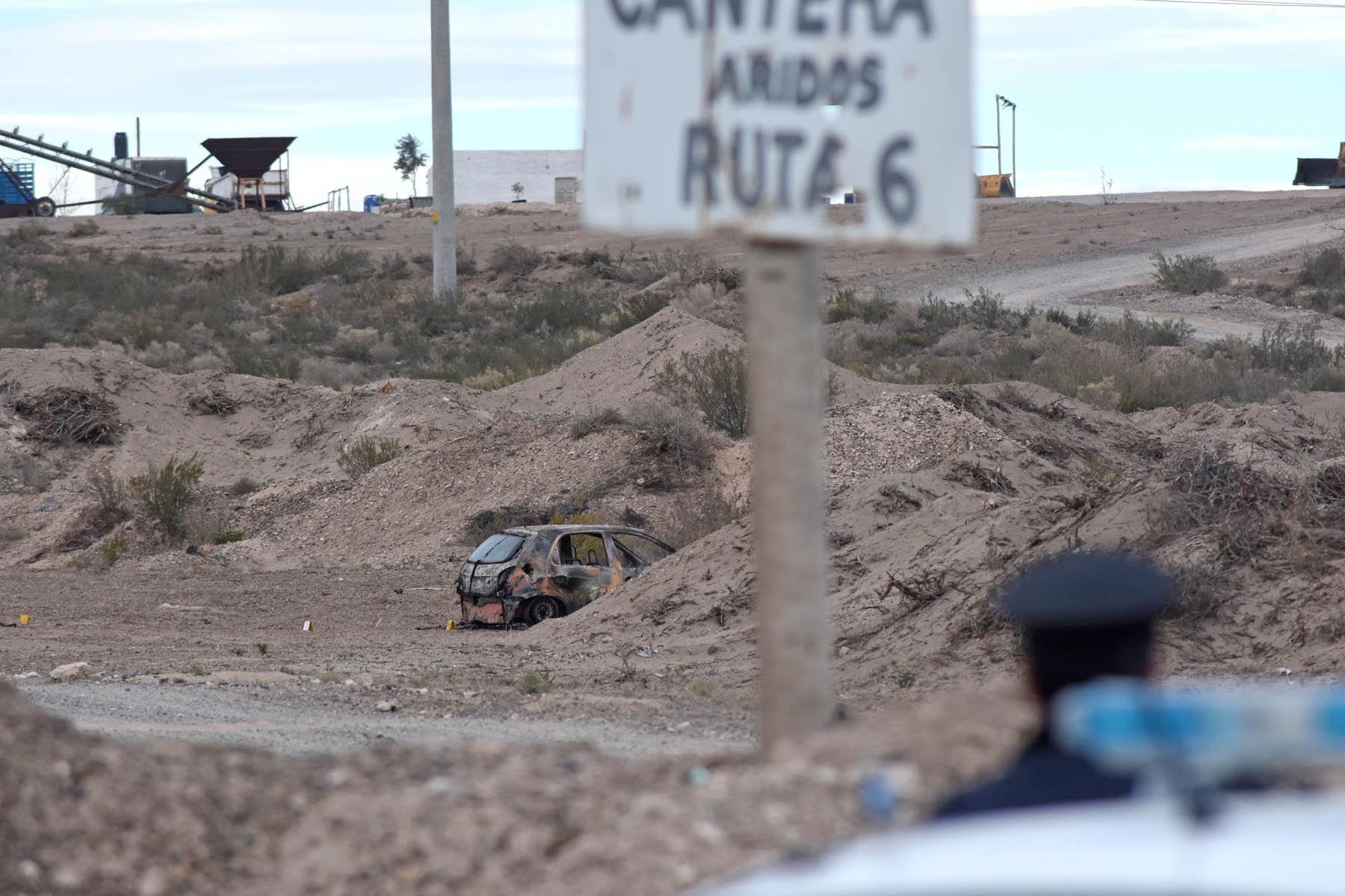 La madrugada del sábado 3 de mayo, un llamado al 911 alertó a la policía: se incendiaba un vehículo en la zona de canteras, frente al Parque Industrial 2, a unos 150 metros de la Ruta 6. Cuando los bomberos llegaron, el auto estaba consumido por el fuego. Sin patentes. Solo quedaba la estructura.