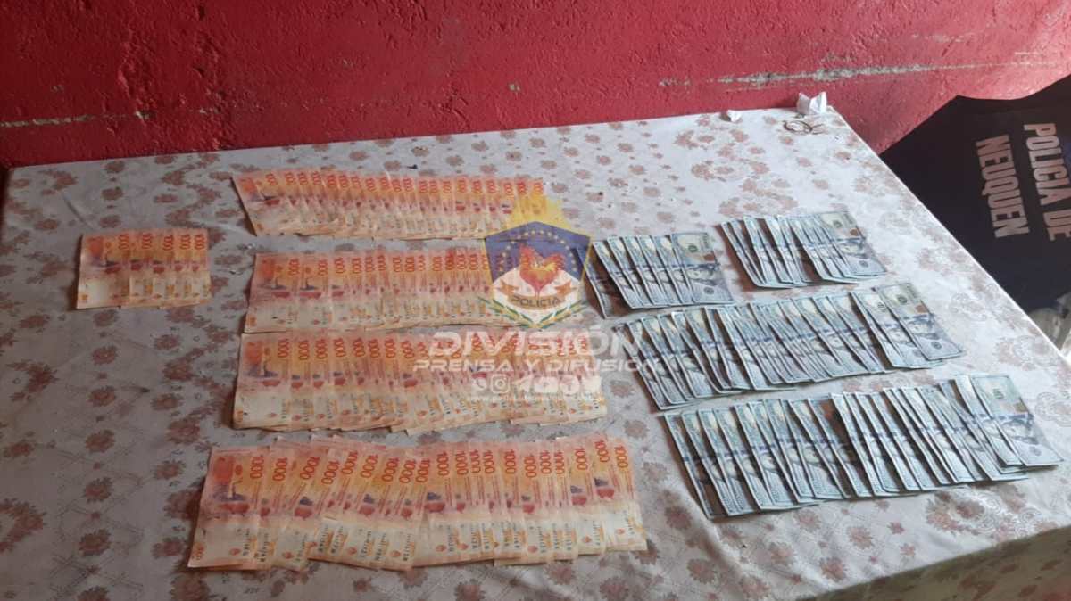 Pesos argentinos y dólares encontrados en el allanamiento. Foto: Policía de Neuquén