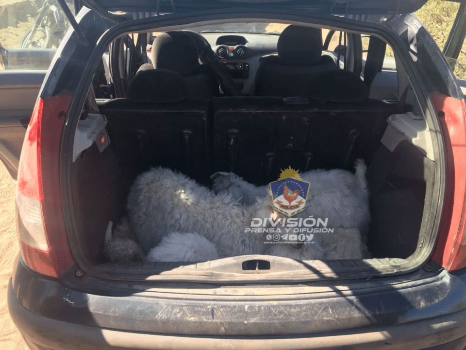 El abigeato en el área rural y aledaña a Cutral Co no para. En esta ocasión, tres hombres metieron siete chivos vivos en el baúl y los trasladaban en un auto. La Policía logró demorarlos, secuestrar el vehículo y devolver los animales al dueño del puesto. Se inició la causa judicial contra los sospechosos.