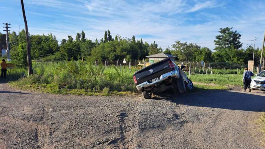 Durante la persecución, la camioneta, una Dodge Ram negra, huyó en dirección a la Ruta 151. Por una mala maniobra del conductor la camioneta se desvió y terminó adentro del canal de riego a 500 metros del cruce con el puente ferroviario.