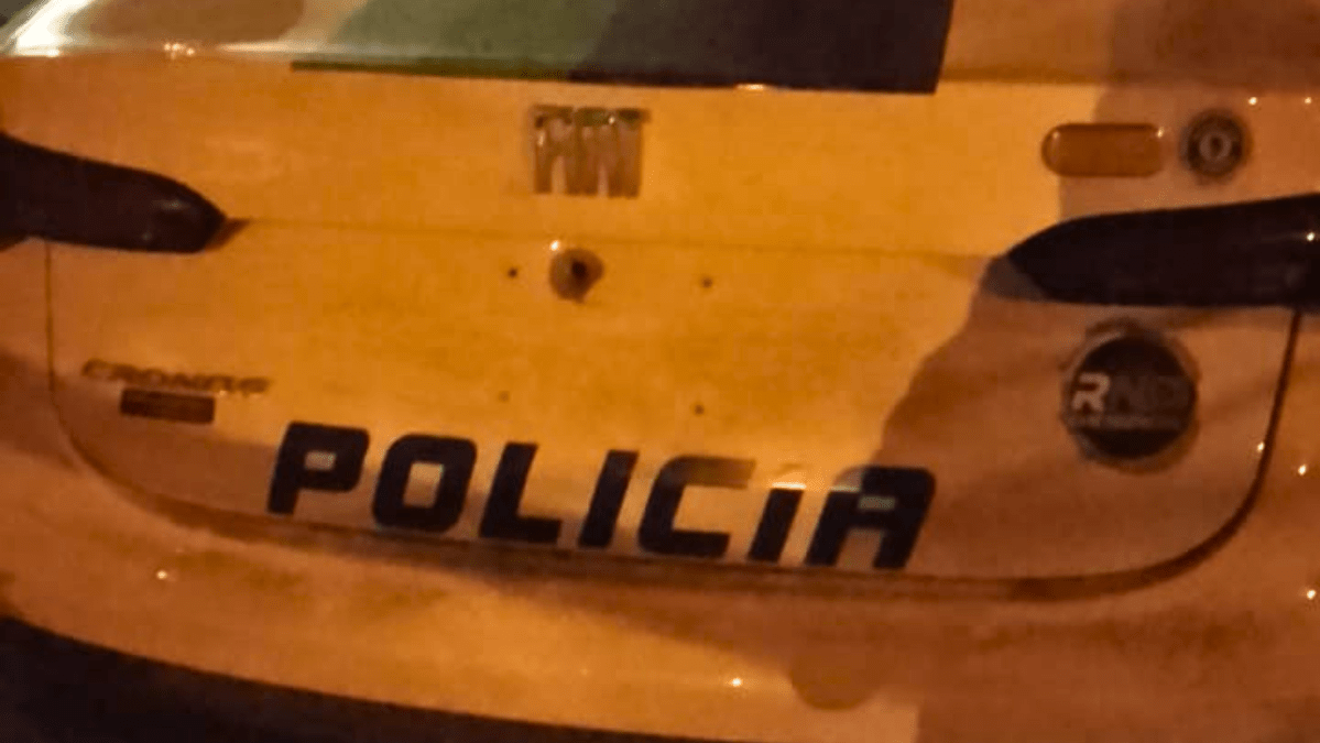 El móvil policial recibió un impacto de bala en el baúl durante la persecución.