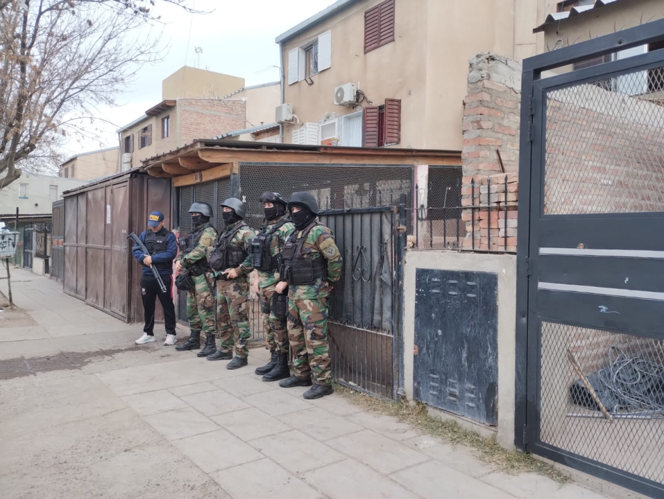 De acuerdo a los detalles que brindaron, los allanamientos se llevaron a cabo con la intervención del Ministerio Público Fiscal Federal con sede en Roca. Sostuvieron que una vez reunidas las medidas de pruebas suficientes, que indicaban la existencia del delito informado y que los lugares de comercialización de drogas eran dos inmuebles ubicados en calle Celedonio Flores al 2100, se solicitó al Juez Federal subrogante Gustavo Javier Zapata las ordenes de allanamientos y requisa personal.