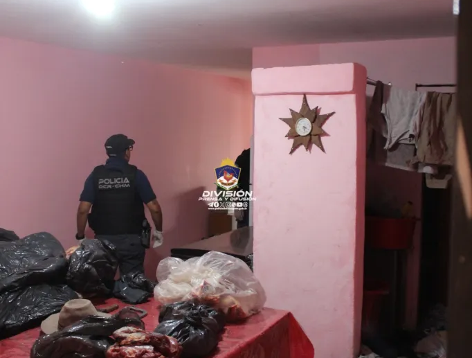 Por el hecho quedó demorado un hombre de 54 años. Además en el allanamiento encontraron cuchillos, balanzas y lonas con sangre, entre otros elementos.