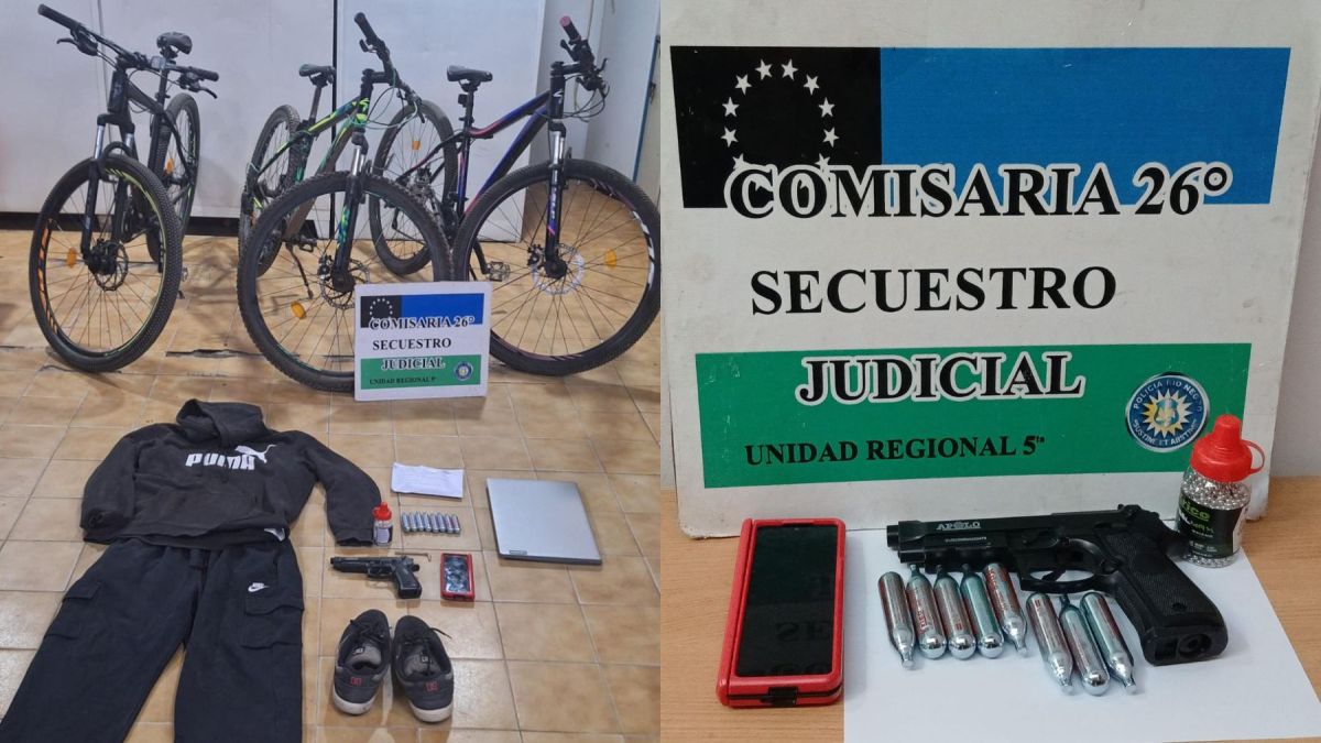 Durante el operativo también se incautaron tres bicicletas, un teléfono celular, una notebook y prendas de vestir que coinciden con registros fílmicos del hecho investigado.