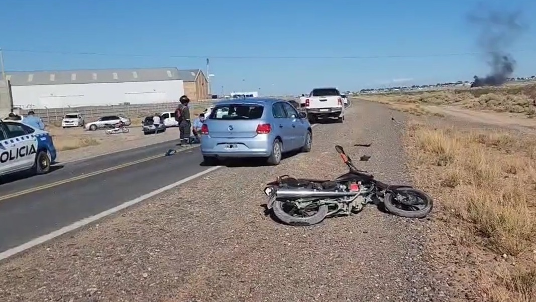 Cerca de las 17 de este miércoles un choque entre un Volkswagen Golf y una motocicleta Honda Titán 150 dejó a un hombre hospitalizado y complicó el tránsito de la autovía norte de Neuquén. El hecho ocurrió en la intersección de la actual ruta 22 y la calle "C. Papa".