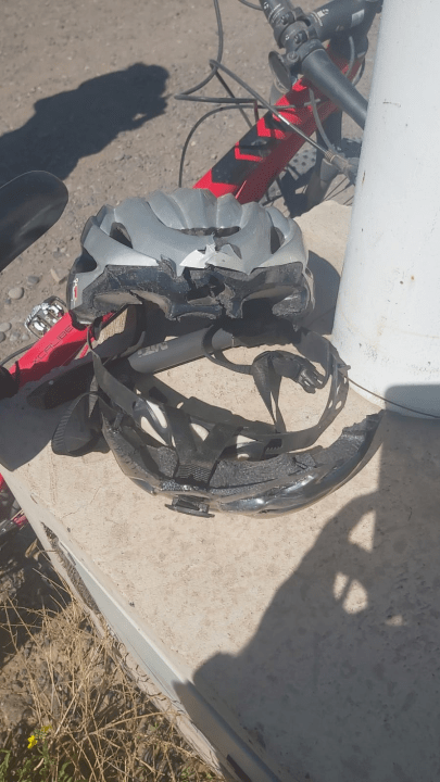 La primera información indica que la mujer habría pasado a llevar con uno de los espejos al hombre y este impactó fuertemente con su cabeza la cinta asfáltica, razón por la cual el casco que llevaba puesto quedó destruido. Demostrando la violencia del golpe.