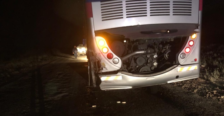 Los pasajeros del colectivo quedaron varados por varias horas sin calefacción, ya que el impacto en el micro provocó la rotura de mangueras y sistema de calefacción.