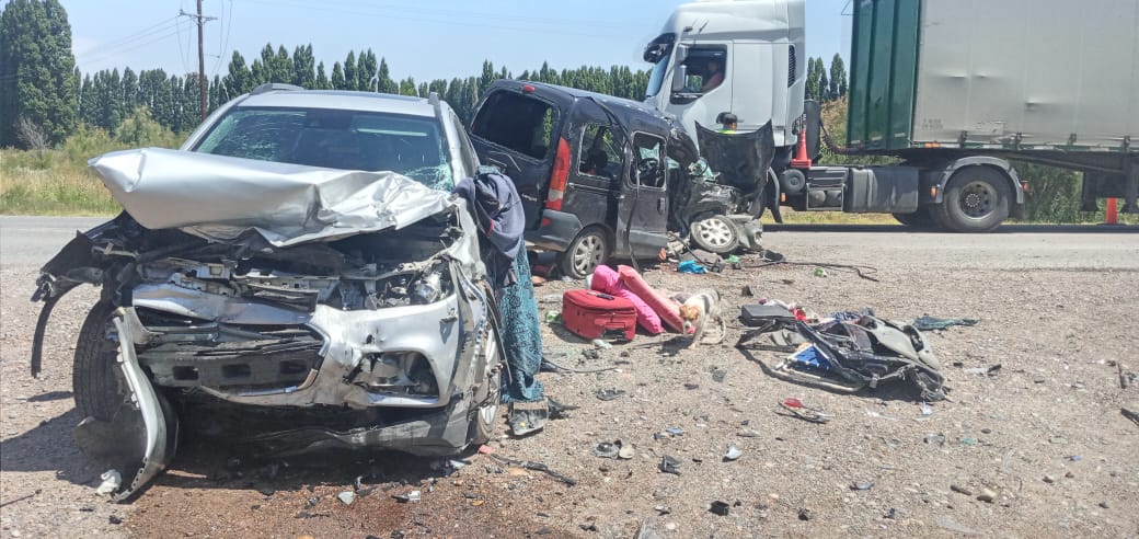 «Una pareja de entre 44 y 50 años viajaba en la Renault Kangoo, ambos murieron tras chocar de frente con una Chevrolet Tracker conducida por una mujer de 50 años aproximadamente, esta última resultó prácticamente ilesa», contó en dialogo con RÍO NEGRO.