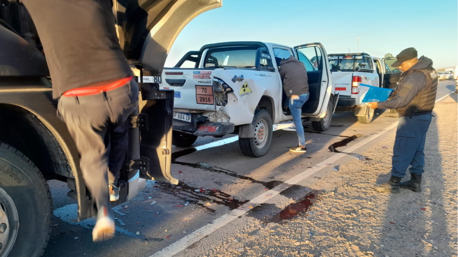En cuanto a los vehículos incolucrados mencionó que: «Tres de ellos se trataban de camionetas Pick Up, en tanto el restante fue un vehículo camión con semiremolque». Producto del choque, indicó que los vehículos «quedaron sobre el margen norte de la Ruta 7».