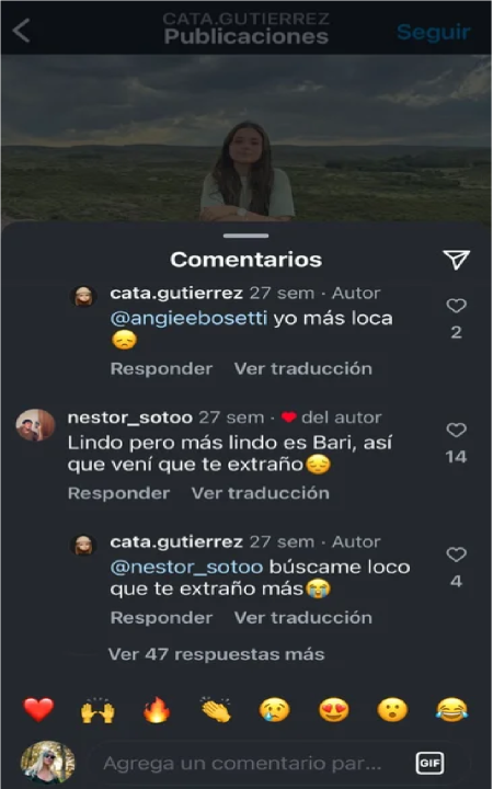En enero de este año Néstor Soto le escribió un comentario a Catalina Gutiérrez en sus redes sociales donde expresaba que la extrañaba.