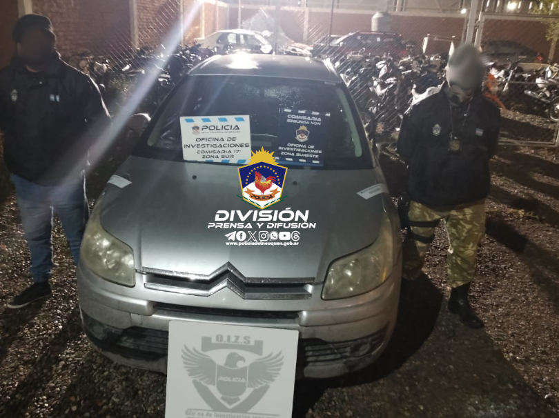 Auhir informó que según los datos recabados pudieron reconocer que el vehículo en el que se transportaban los delincuentes era un Citroën C3. «Después de ver cámaras de la provincia y datos que brindaron los vecinos pudimos detectar el dominio del auto y supimos que era de Centenario«, detalló.