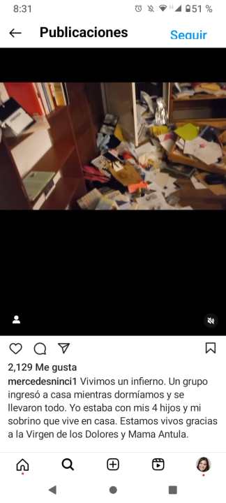 La periodista mostró en sus redes sociales cómo quedaron las habitaciones y narró: “Vivimos un infierno. Un grupo ingresó a casa mientras dormíamos y se llevaron todo”