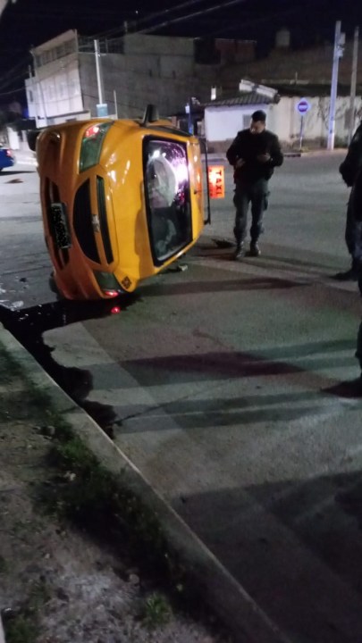 El taxi quedó en el carril derecho de la calle Moritán, interrumpiendo el tránsito, aunque no en su totalidad. Cerca de las ocho pudieron ponerlo en sus cuatro ruedas.