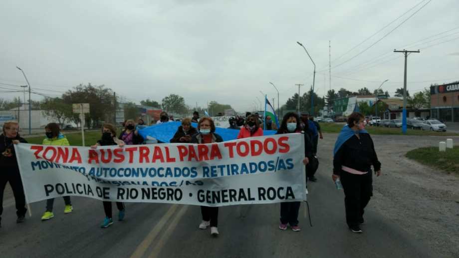 Policías retirados y pensionados marcharon sobre ruta 22 en Roca