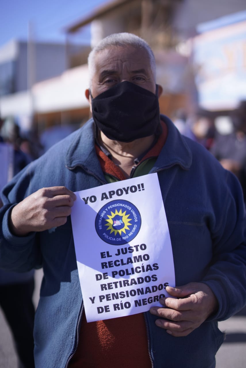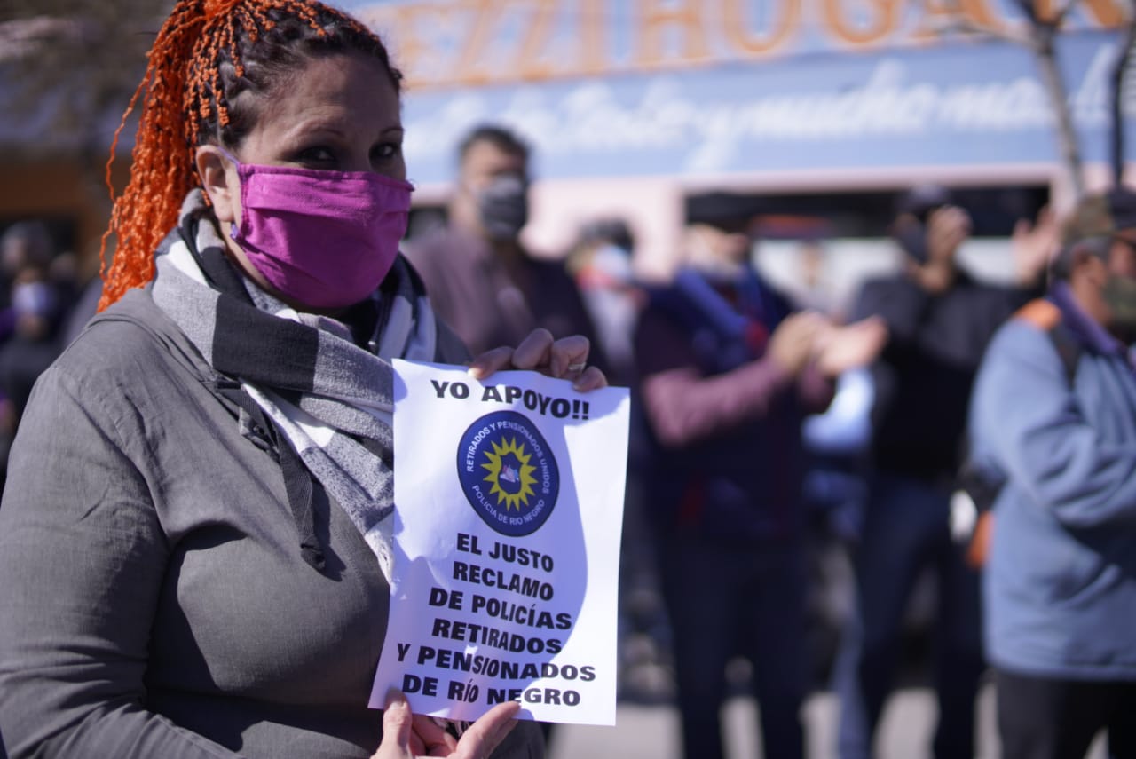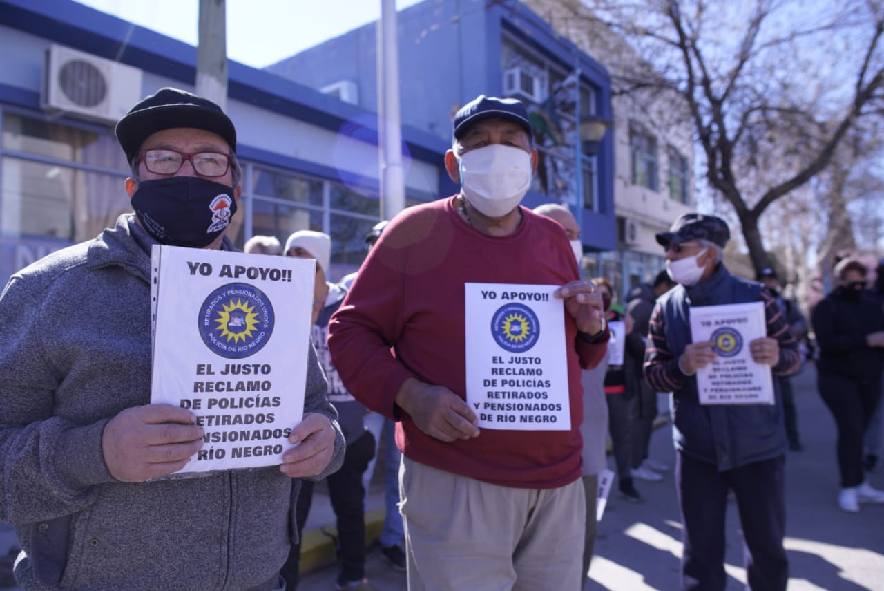 Efectivos en actividad, policías jubilados y retirados, y familiares de uniformados se manifestaron ayer en distintos puntos de Río Negro para cuestionar el aumento anunciado por el gobierno provincial y reclamar un básico de 70.000 pesos.