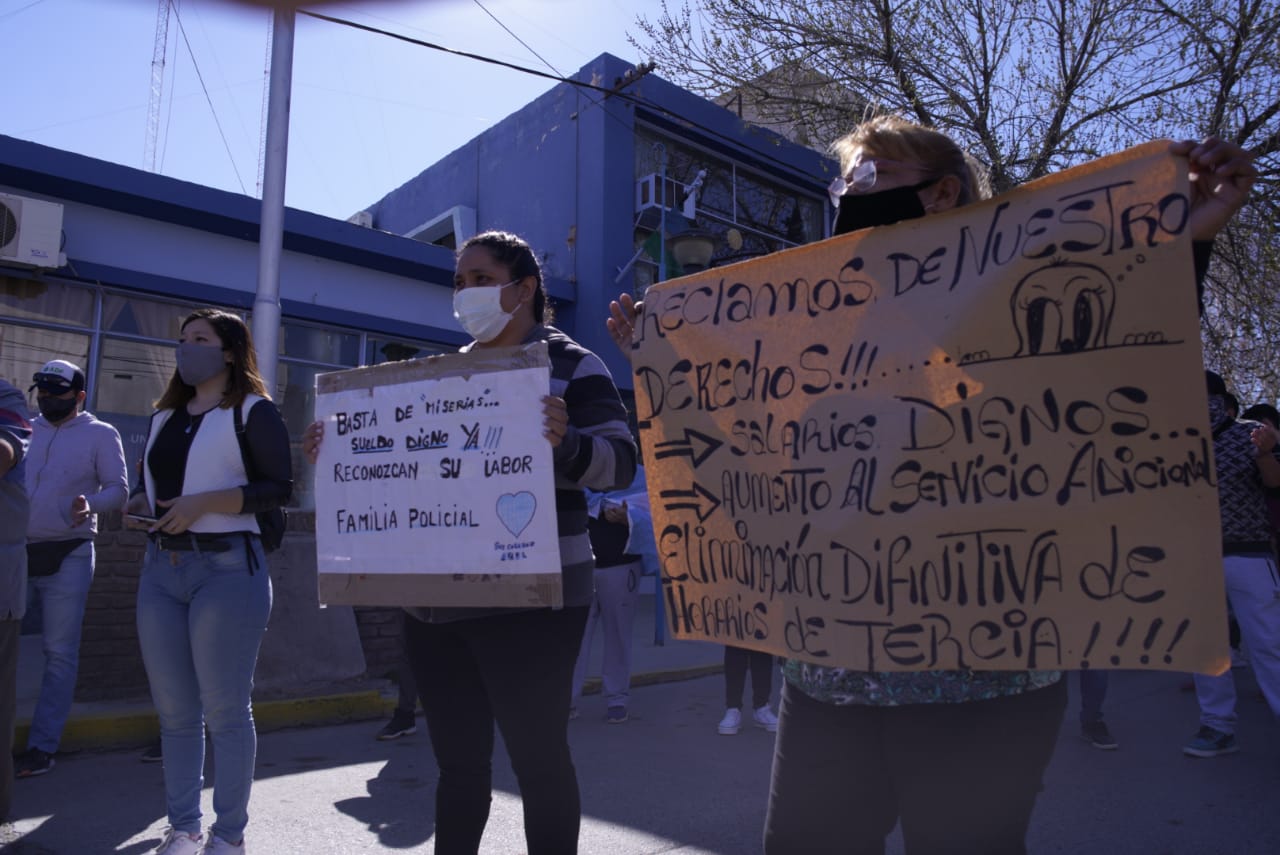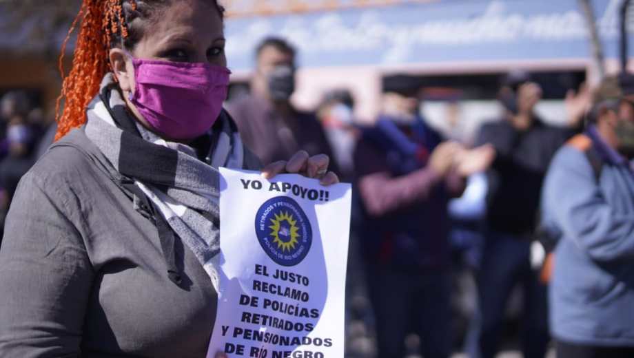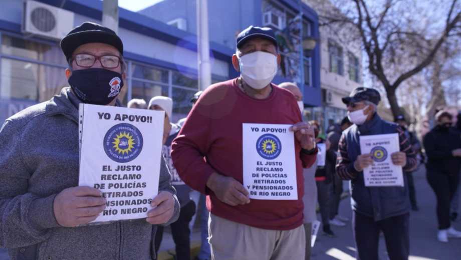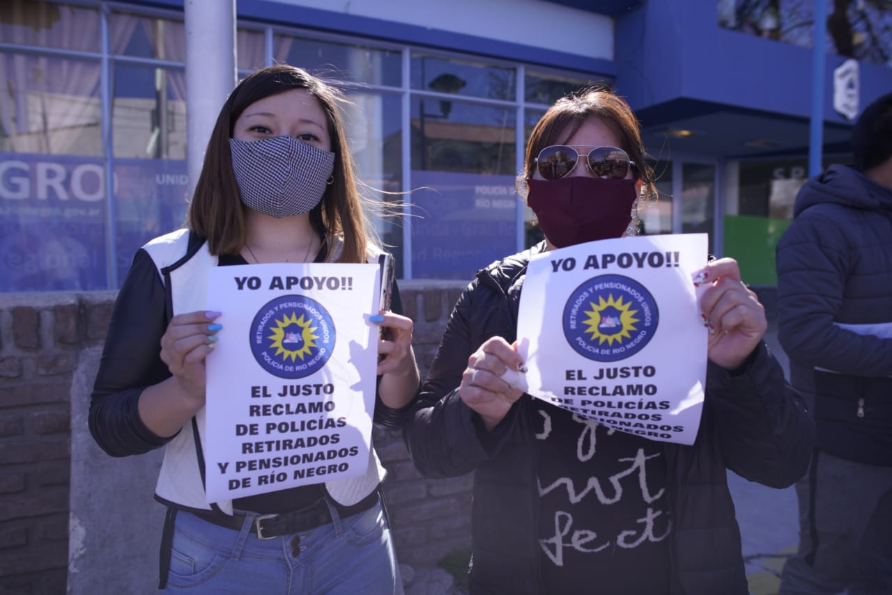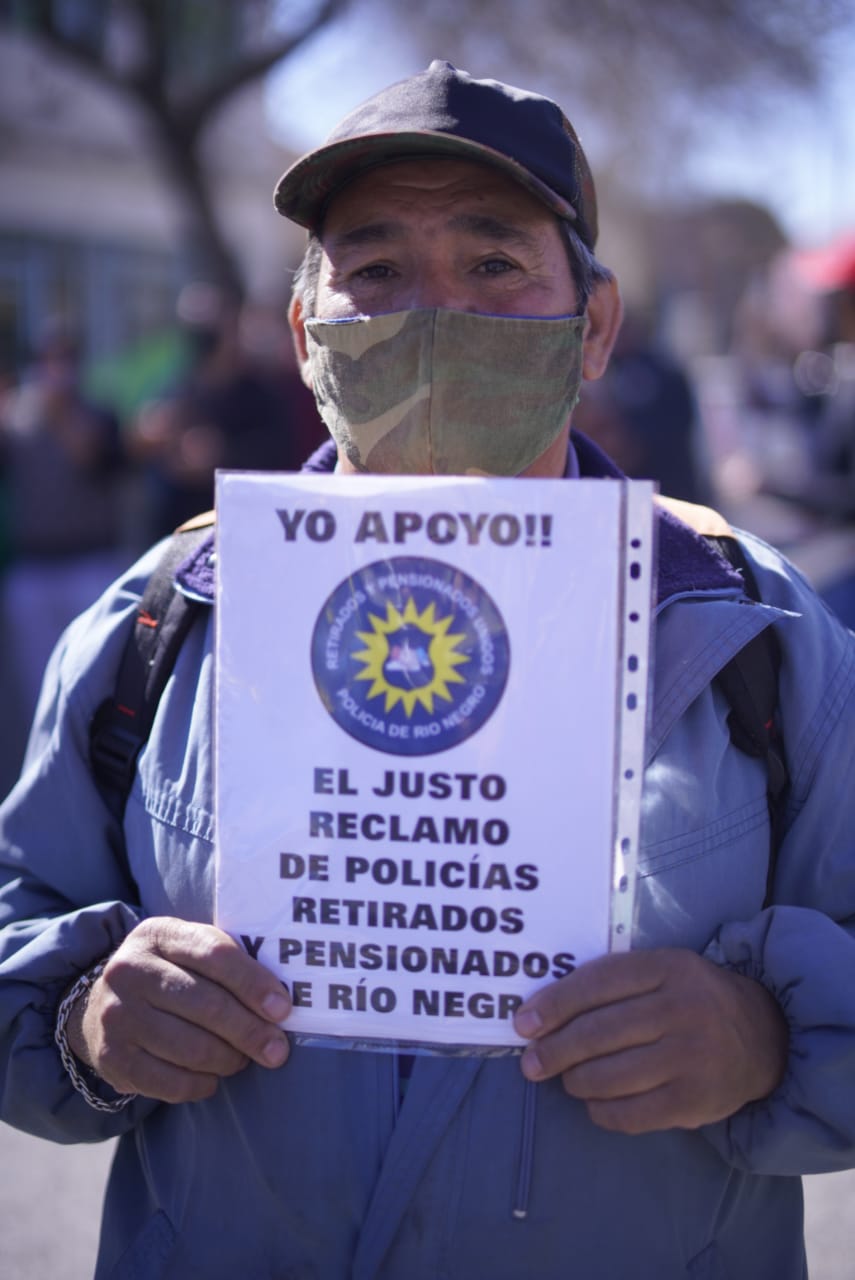 Efectivos en actividad, policías jubilados y retirados, y familiares de uniformados se manifestaron ayer en distintos puntos de Río Negro para cuestionar el aumento anunciado por el gobierno provincial y reclamar un básico de 70.000 pesos.