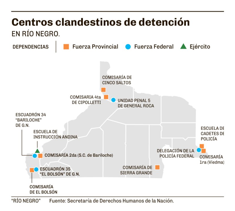 En Río Negro funcionaron aproximadamente una docena de centros clandestinos que hoy son señalizados como sitios de memoria. Desde 2013, estos espacios comenzaron a identificarse en el marco de la Red Federal de Sitios de Memoria, con el objetivo de preservar y difundir los lugares donde operó el plan represivo del Estado, utilizados para la detención ilegal, la tortura y la desaparición forzada de personas.