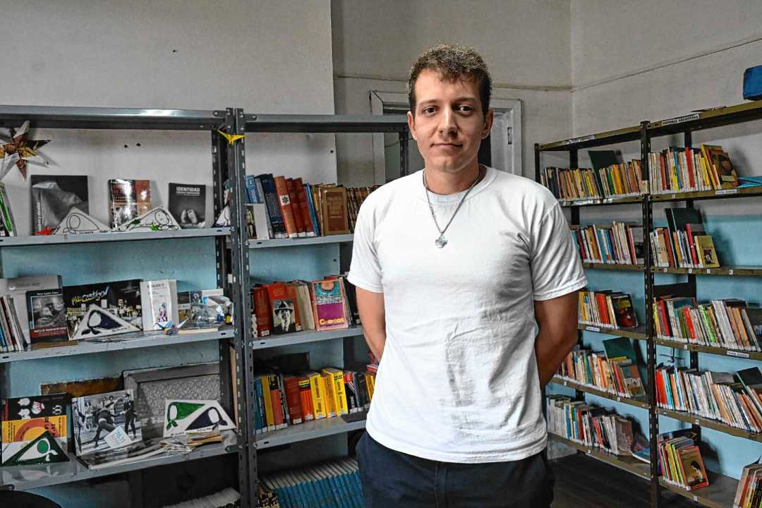 Lucio Paniceres forma parte de la comisión de la Biblioteca Popular de Stefenelli, dónde construyeron un rincón dedicado a la memoria. Foto: Alejandro Carnevale.