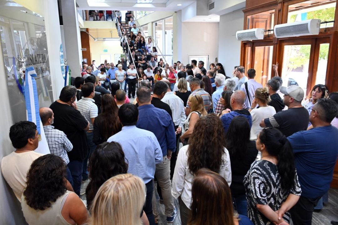 El personal de la Legislatura de Río Negro realizó medidas de fuerzas este miércoles por 24 horas y se movilizó frente a la sede central del Poder Legislativo. Rechaza la suba salarial por medio de bonos, con la expectativa de una nueva propuesta tras las paritarias previstas con los restantes gremios.