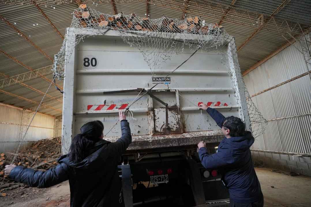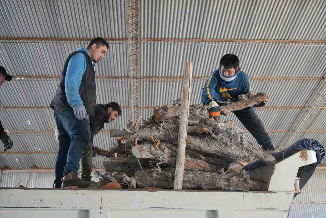 Tras el arribo de las primeras camionadas, la leña será repartida en toda la provincia por el personal del ministerio de Desarrollo Social de Santa Cruz.