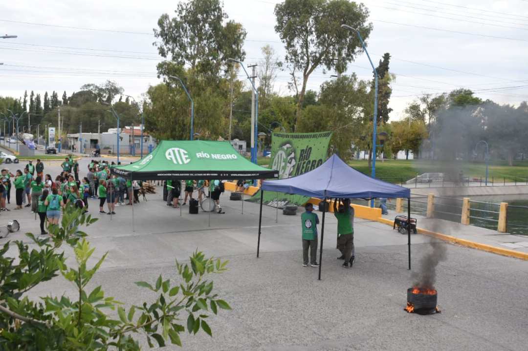 En Roca, los referentes gremiales se apostaron desde las 7.30 en la rotonda de avenida Roca y Gelonch, frente a la sede del hospital Francisco López Lima. La actividad nucleó a las seccionales del Alto Valle.